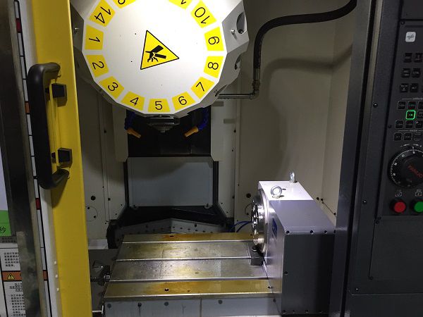 發(fā)那科鉆攻機配沃迪士T100五軸數控分度盤(pán)轉臺
