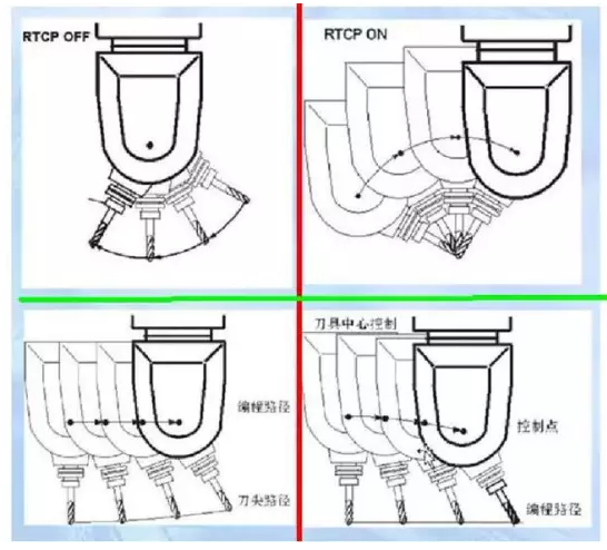 不具備RTCP的五軸機床和數控系統必須依靠CAM編程和后處理,事先規劃好刀路,同樣一個(gè)零件,機床換了,或者刀具換了,就必須重新進(jìn)行CAM編程和后處理,因而只能被稱(chēng)作假五軸,國內很多五軸數控機床和系統都屬于這類(lèi)假五軸。當然了,人家硬撐著(zhù)把自己稱(chēng)作是五軸聯(lián)動(dòng)也無(wú)可厚非,但此(假)五軸并非彼(真)五軸!
