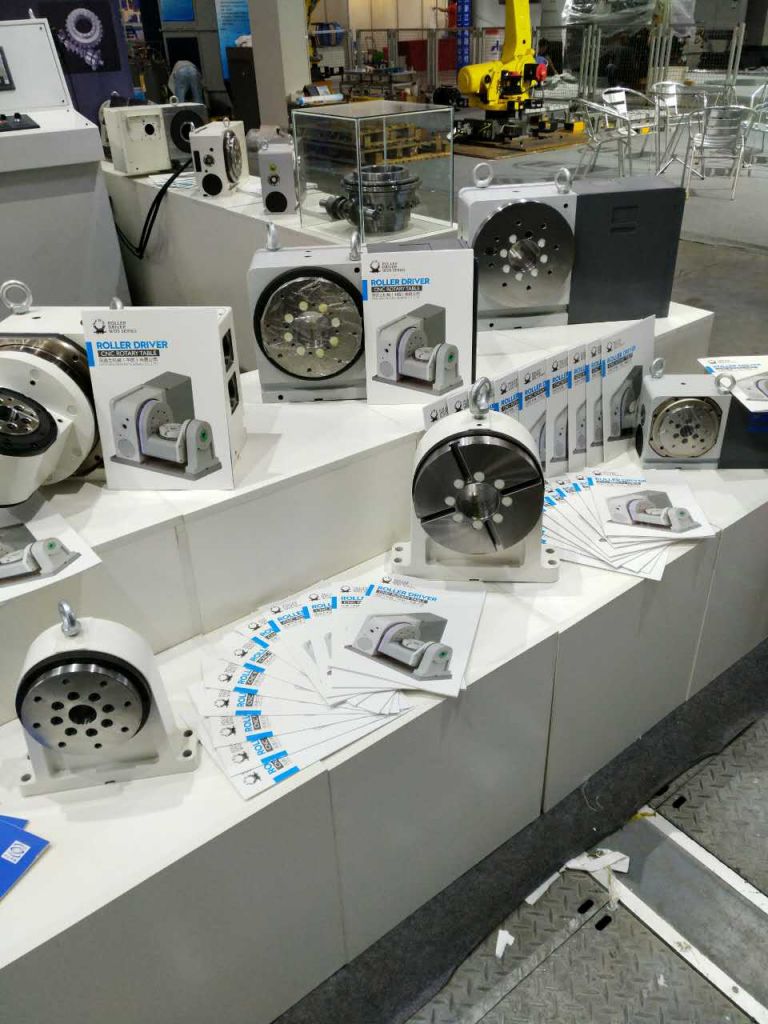 沃迪士精密機械有限公司經(jīng)過(guò)精心準備,攜手中山市中軸軸承有限公司在本次展覽會(huì )上展出了沃迪士的凸輪機構產(chǎn)品,CNC第四軸,單臂式五軸,搖籃式五軸等精密數控轉臺全部亮相,并成為該展會(huì )中一大亮點(diǎn)。高剛性,高速度,正反轉零背隙的RollerDriver技術(shù),吸引了眾多客商的駐足觀(guān)看與咨詢(xún)洽談。不少求購商帶來(lái)了加工現場(chǎng)遇到的技術(shù)難題,但經(jīng)過(guò)沃迪士高素質(zhì)工程師的技術(shù)指導與工藝優(yōu)化,當場(chǎng)解決了問(wèn)題,讓眾多客戶(hù)大為滿(mǎn)意,現場(chǎng)達成購貨意向。